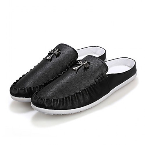 Men's Shoes Leather Casual Clogs & Mules Casual Stitching Lace / Slip-on Black / White / Orange